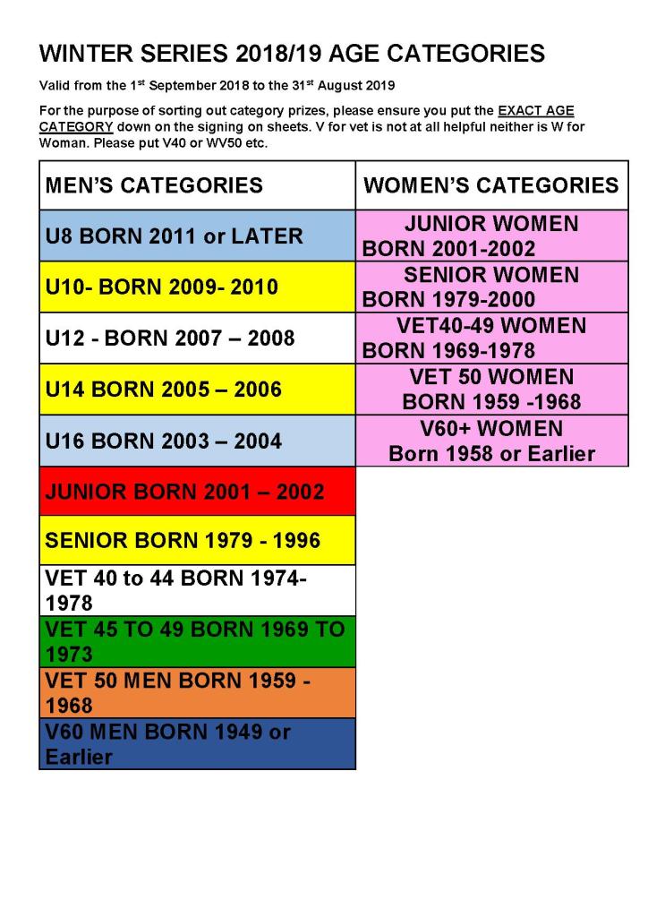 If you are changing age category, please hand in your OLD number at the first Winter Event you attend and it will be exchanged free of charge for your new category number. Otherwise, you will have to pay a £2 re-registration Fee.