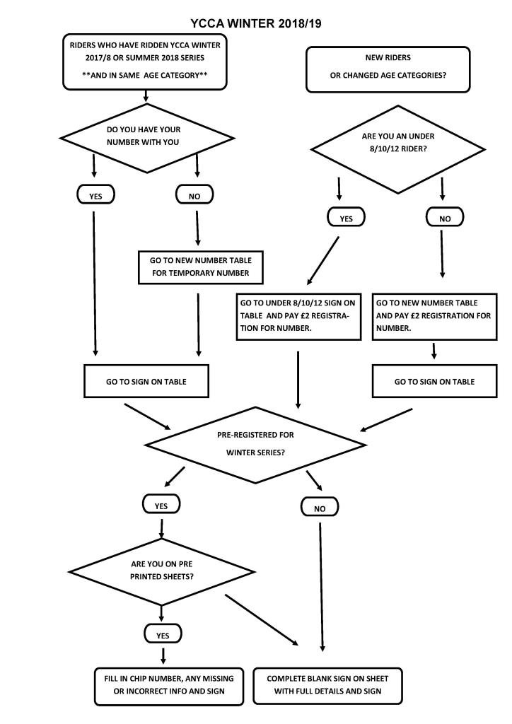 JUST TURN UP ON THE DAY AND PAY A REGISTRATION FEE (£2) AND COLLECT YOUR NUMBER FROM THE NEW RIDER TABLE before going to sign on. You keep this number until you change age categories.