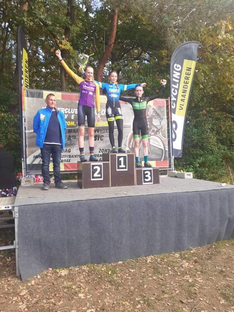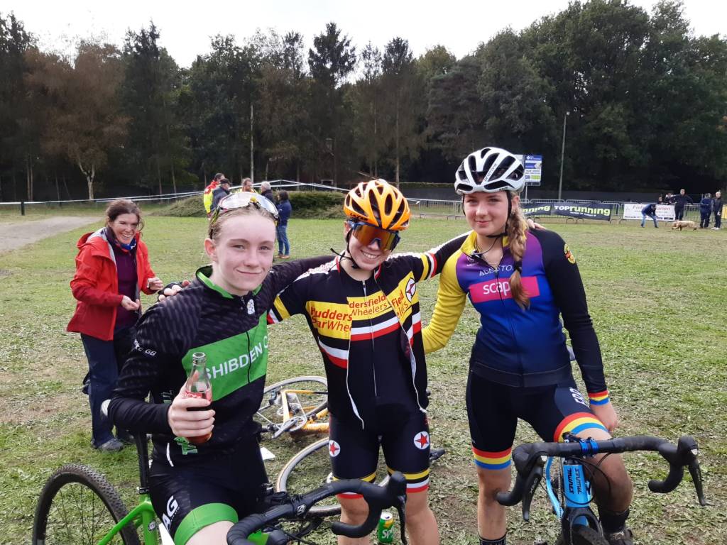 Again, from Maddie’s perspective “Heusden Zolder was even better. There was a grass start which the proceeded to go into a long section in the woods. The section in the woods was quite tight, making it hard to pass people, it also contained a lot of tree roots, some of which I bunny-hopped. After that we went through a sandy section with some tight corners, I personally found these corners hard at race pace as if you went too wide you ran out into the loose sand, however I got to grips with them as the race progressed. The course also contained a set of hurdles and two bridges, one of which had stairs on”.